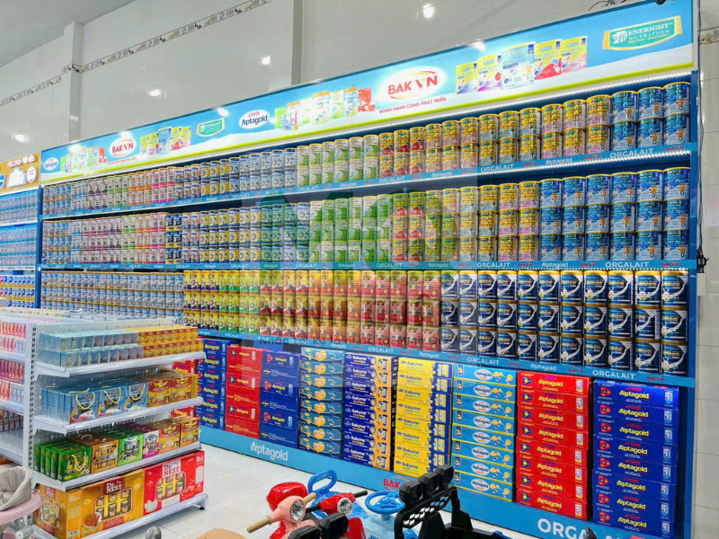 Hình ảnh bàn giao dự án Lắp đặt kệ siêu thị cho Hệ thống mẹ và bé Ánh Ngân Củ Chi TP.HCM
